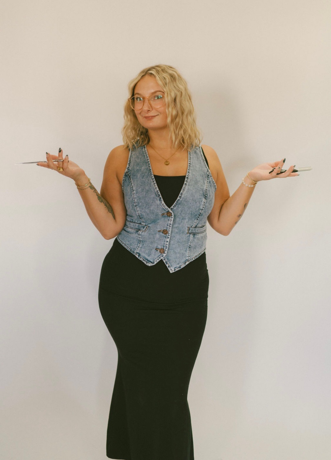 with only 2 years salon experience, Jessie is a natural hair artist. Don’t be fooled by her sweet smile, she is witty and a bit sarcastic. Jessie loves to have a good laugh, the beach and all things country, especially Morgan wallen. Jessie loves to be around her family and even coaches her sister’s softball team. Jessie is crafty, creative and enjoys learning new things.Specialties: Event styling , lived in color, long layers and dry cutting